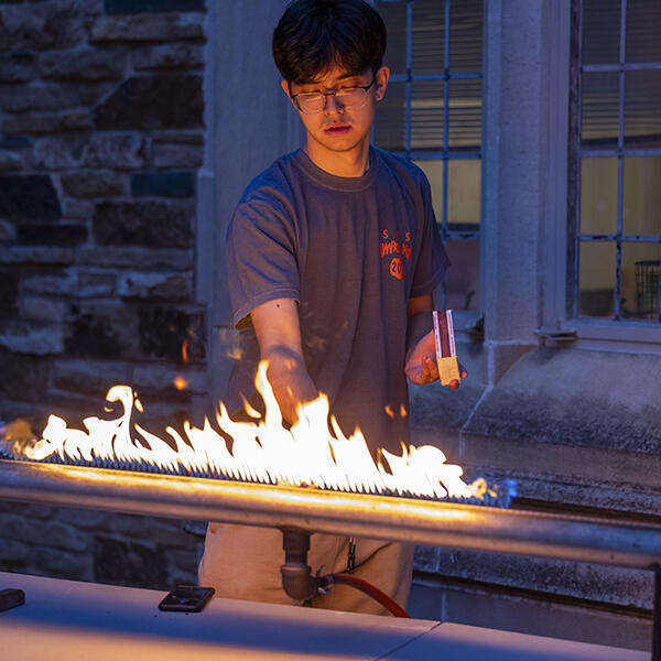 For Rhodes students, spooky season is not official until the annual Pumpkin Drop! An annual fair hosted by the Society of Physics Students, the Pumpkin Drop features multiple interactive demonstrations and experiments that allow students to play around with gravity, create “comets,” hold fire in their hands, or watch the notes they press on a keyboard appear in the air as bolts of electricity. The event is also true to its name, as when the biggest part of the night comes, all eyes are on one thing: SPS members dropping pumpkins—frozen in liquid nitrogen—off the roof of Rhodes Tower. The goal is to measure the triboluminescence which, theoretically, should spark when they shatter. The elusive spark has yet to be seen, but the search continues.